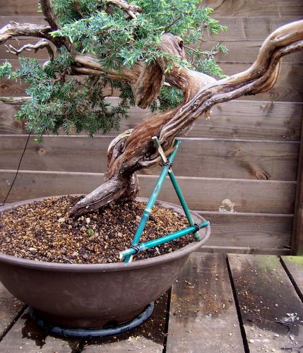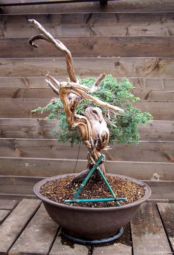 Above: Wet raffia was applied to prevent branches to break when they were severely bent.